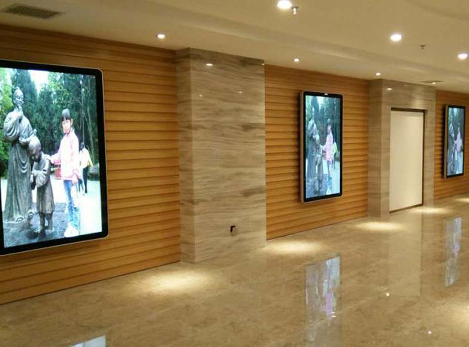酒店的通道墻壁上,安裝壁掛式廣告一體機,彰顯酒店形象,同時給住戶帶來不一樣的視覺體驗。